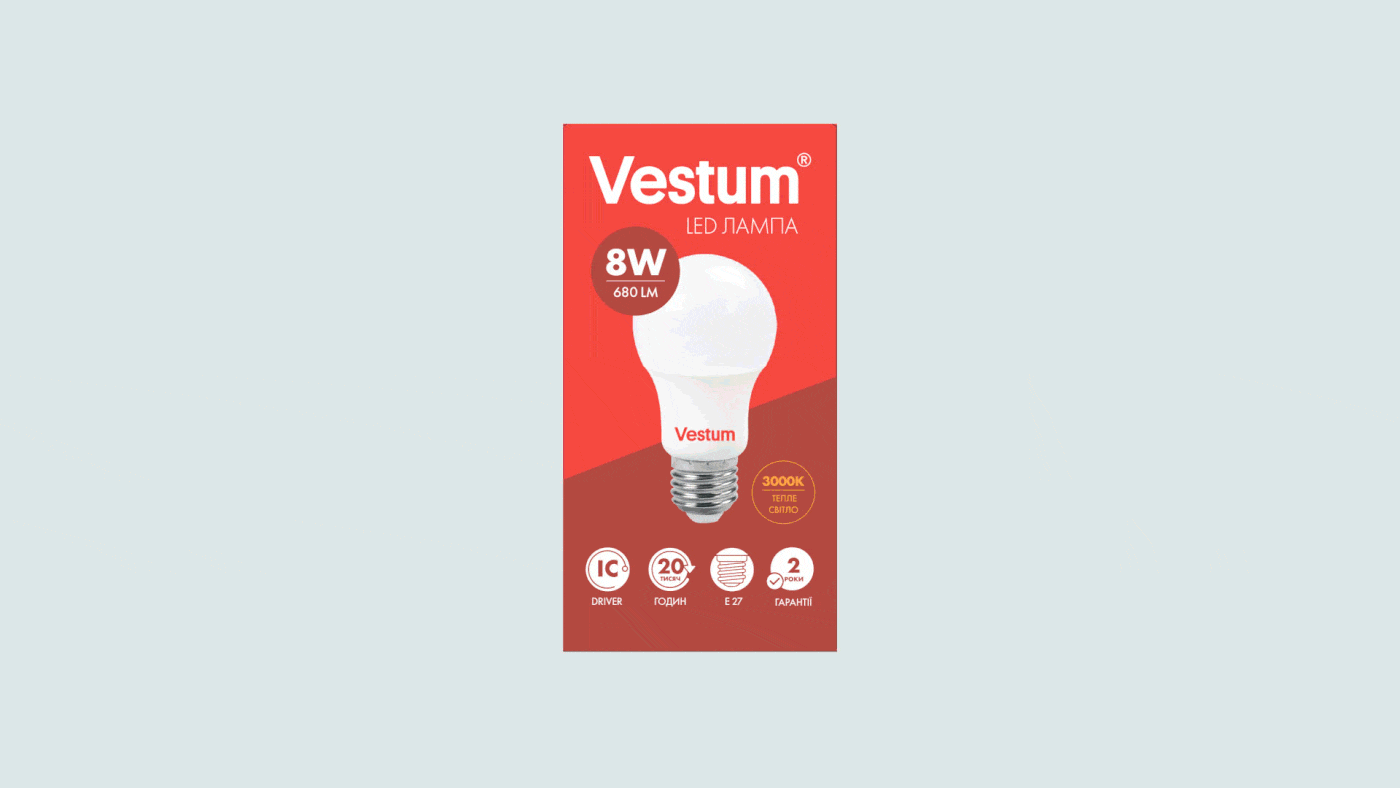 Проанализировать рынок LED ламп и визуальные образы брендов. Создать фирменный стиль компании Vestum, который будет достойно выделяться на фоне других игроков.