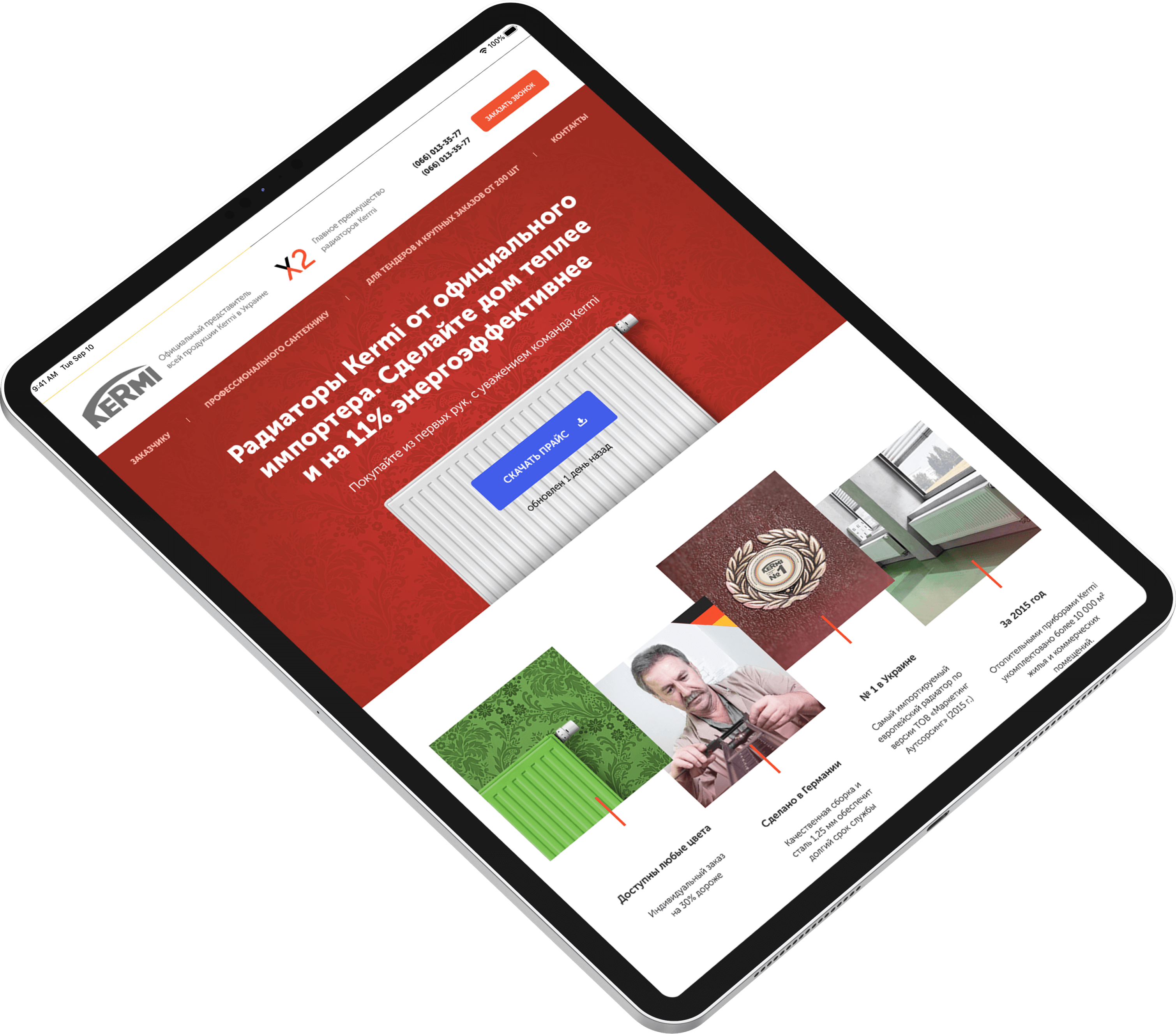 Провести интервью с клиентом и погрузится в тему. Раскрыть главные преимущества радиаторов Kermi на лендинге. Запустить трафик и генерировать лиды для отдела продаж.