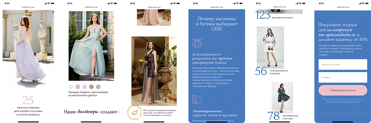 Создать лендинг, который раскроет уникальные смыслы фабрики Odis и выгодно выделит предложение нашего клиента среди конкурентов. Реализовать форму скачивания каталога, в обмен на контакты пользователя, чтобы собрать базу целевых покупателей для отдела продаж.