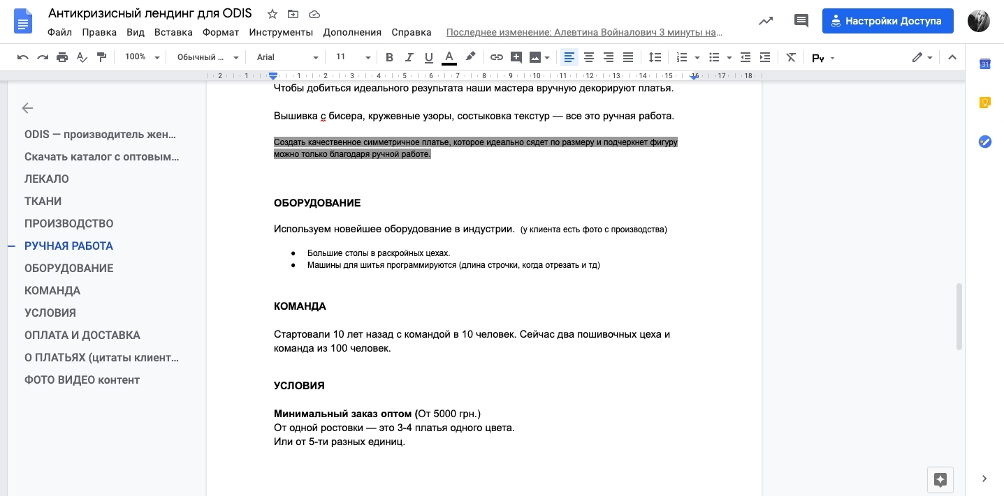Проводим интервью с клиентом и выделяем важные смыслы бренда Odis: