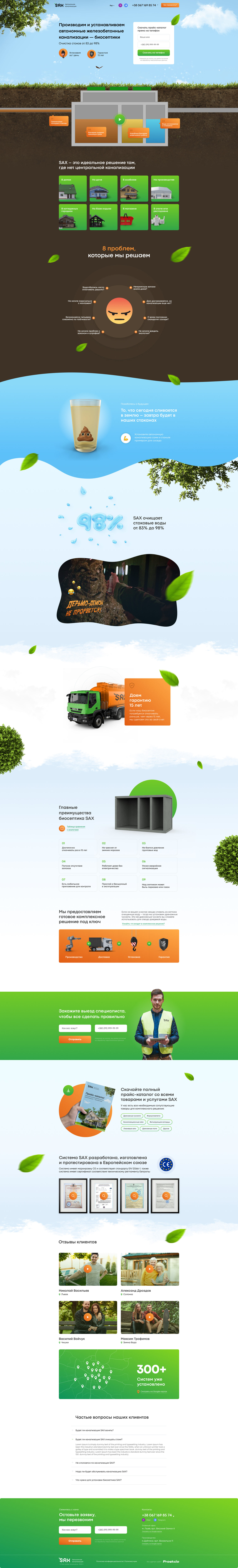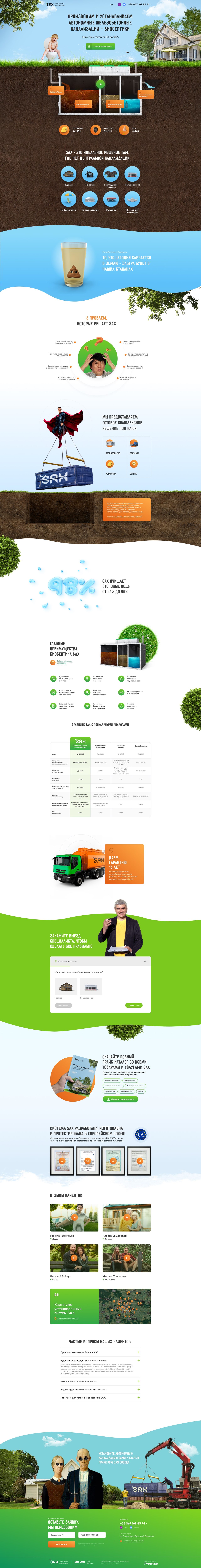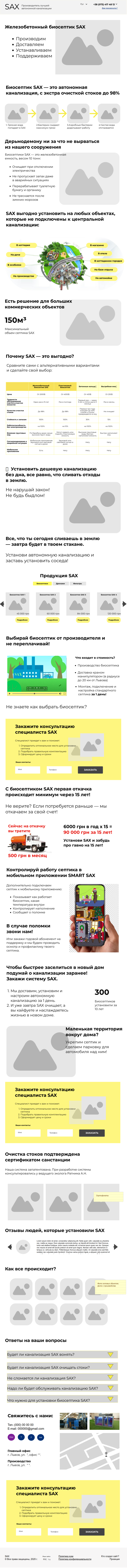 Реализовали лендинг по продаже автономной био-канализации. Разложили по полочкам все проблемы, которые решает установка биосептика SAX. Сравнили продукт клиента с аналогами и объяснили почему железобетонный септик — это лучшее решение.