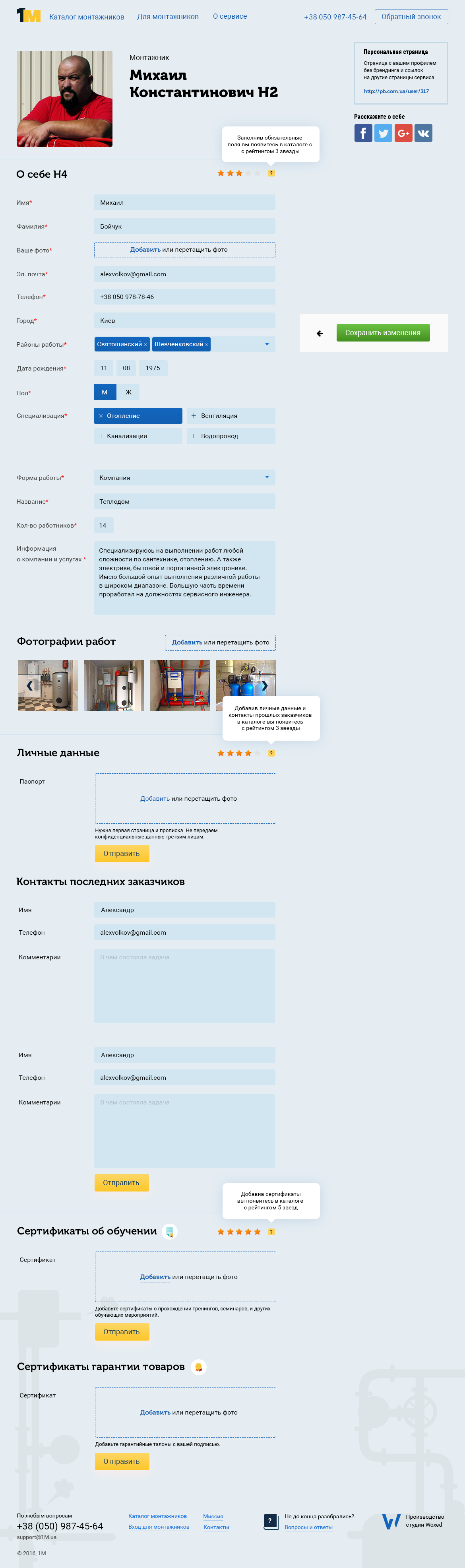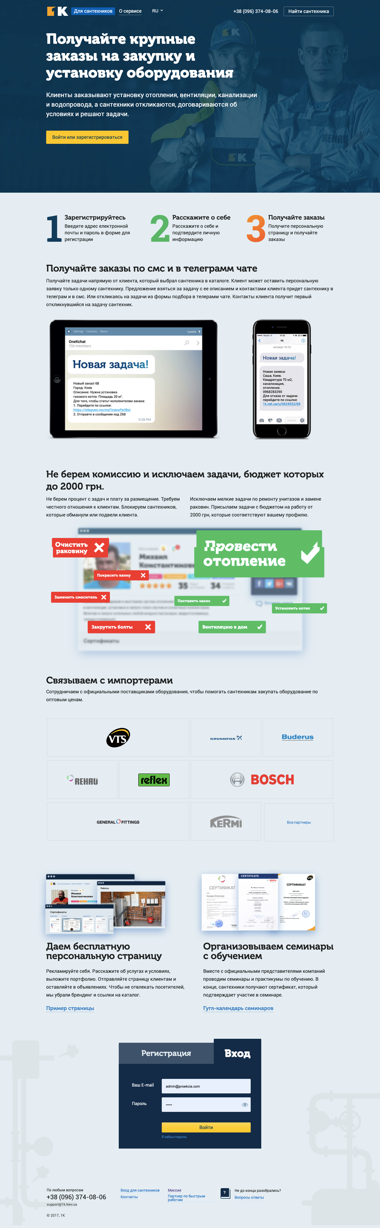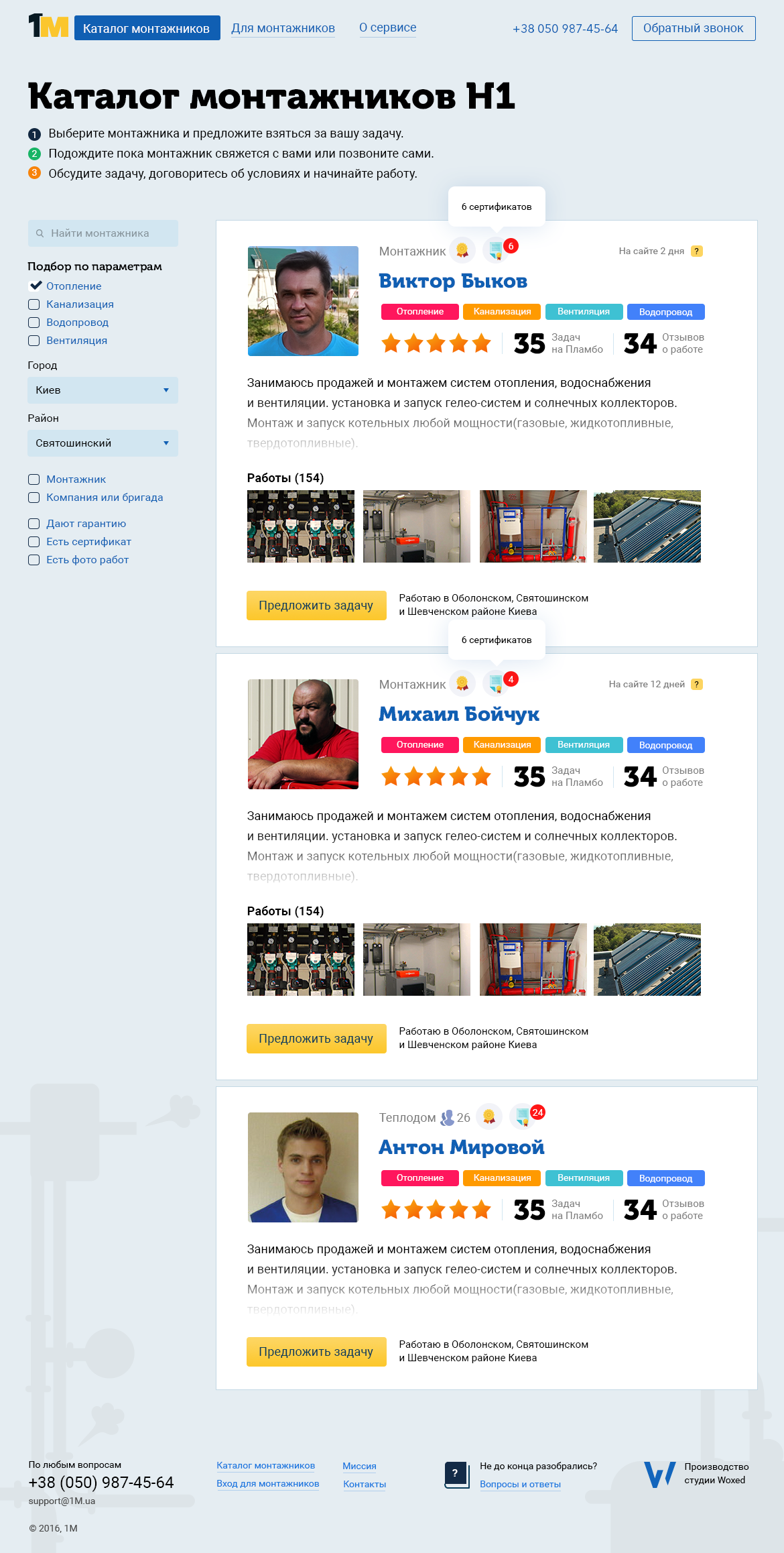 После, приступаем к реализации внутренних страниц: каталог, регистрация, личная страница сантехника, для сантехников, о сервисе, ответы на вопросы.