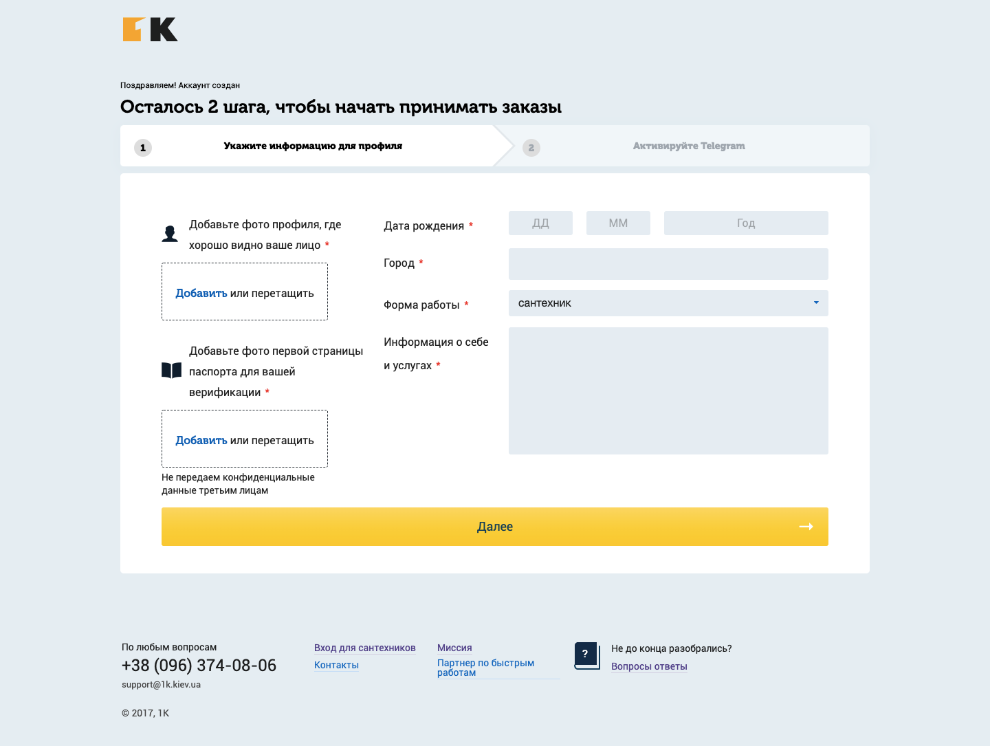 1. После подтверждения администратором регистрации сантехника на сайте в Bitrix создается контакт со всеми данными, что заполнил сантехник.