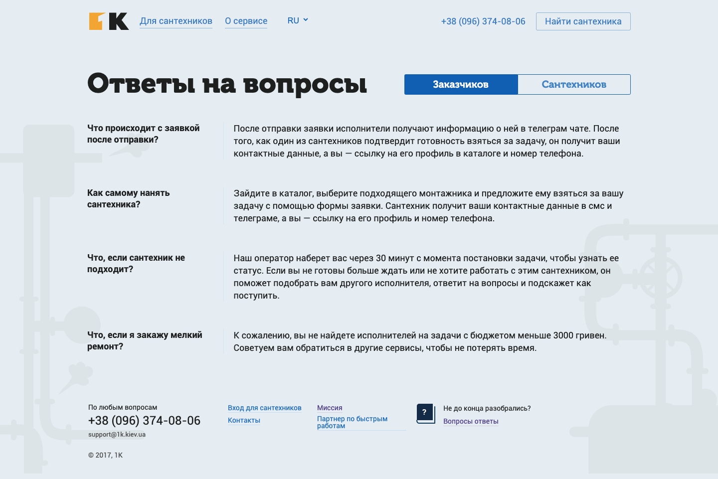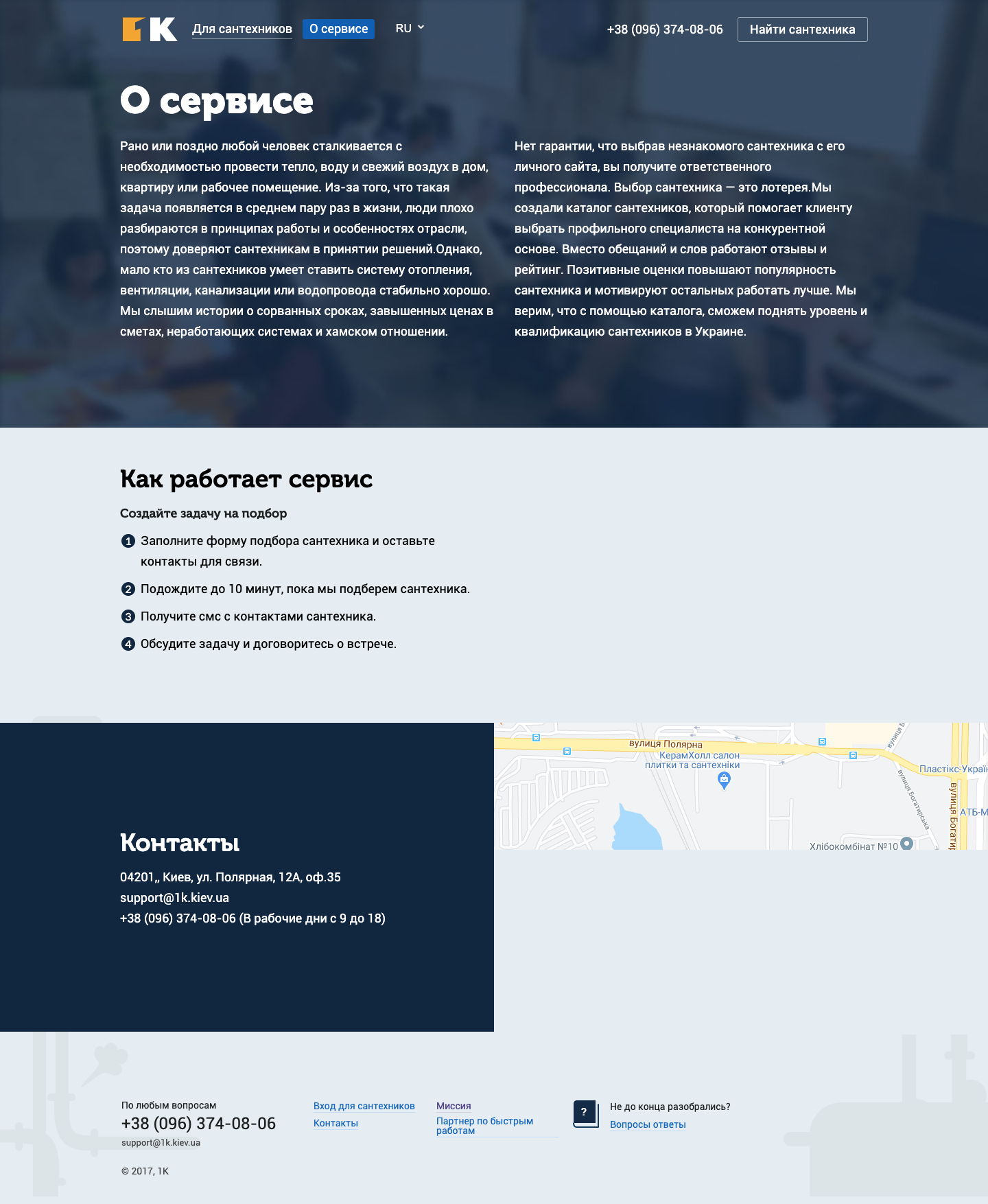 Проводим интервью с клиентом, погружаемся в сферу предоставления сантехнических услуг, разрабатываем и утверждаем прототип.