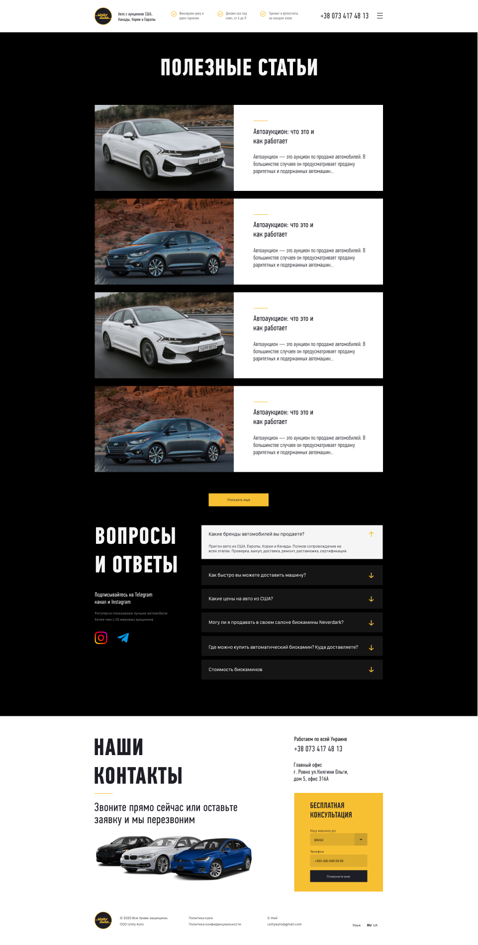 Упаковали компанию по пригону авто из аукционов.Создали лого и фирменный стиль, который совершенно не похож на конкурентов и заметно выделяется. Прописали инструкцию по использованию брендовой айдентики и передали в эксплуатацию. Разработали сайт компании, который закрывает сомнения потенциальных клиентов и упрощает работу менеджеров по продажам.