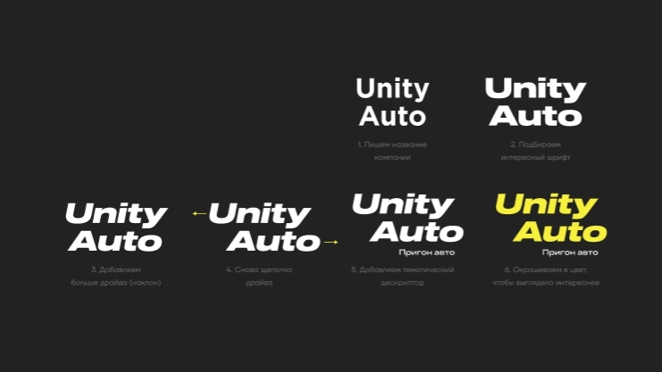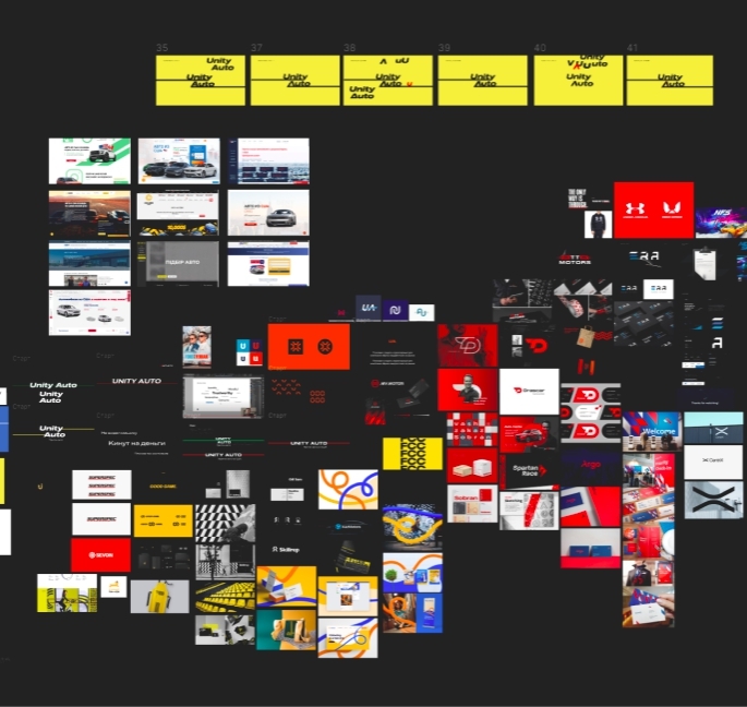 Эту простую идею мы закладываем в основу брендинга.. Прямая линия — это путь, который Unity Auto проходит вместе с клиентом. Символ непрерывного движения из точки А в точку Б.