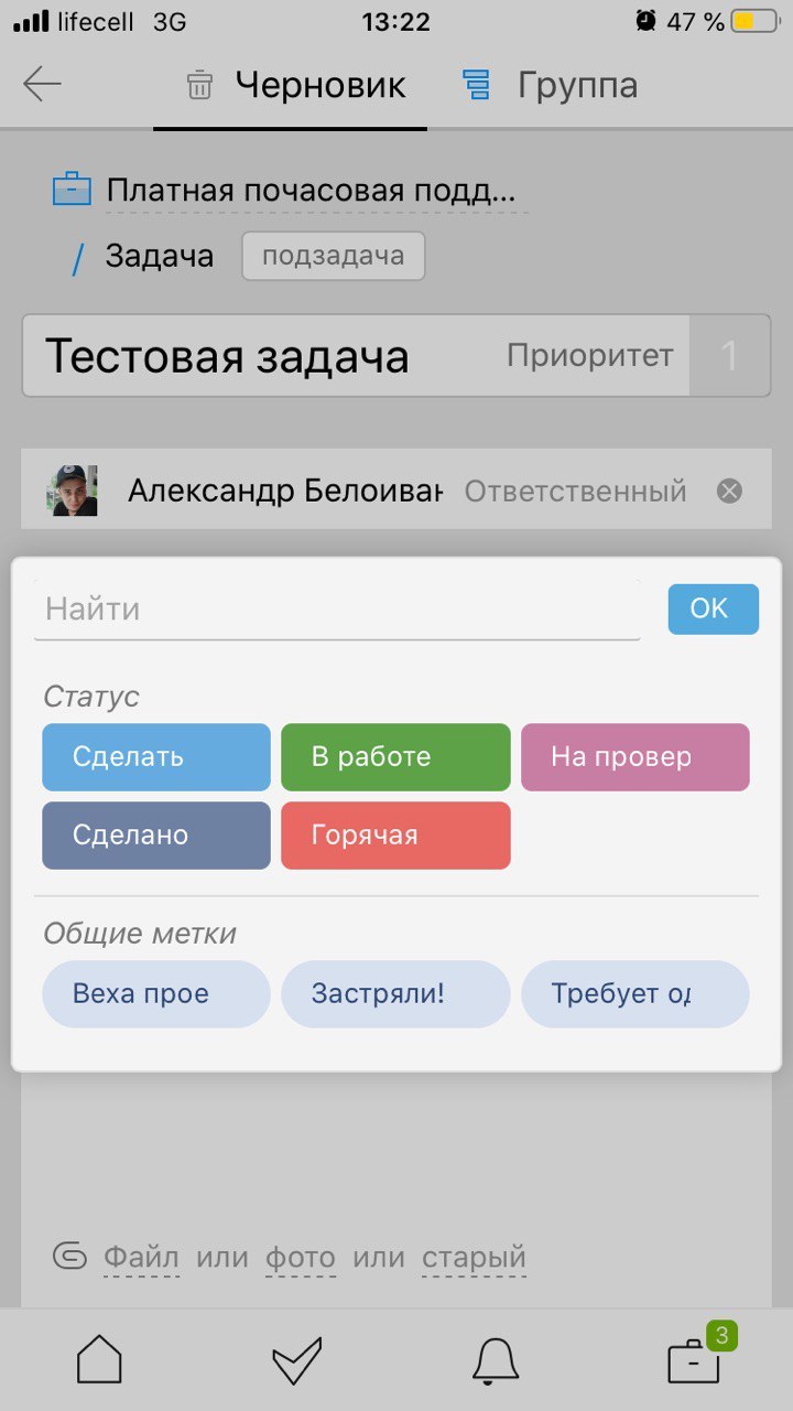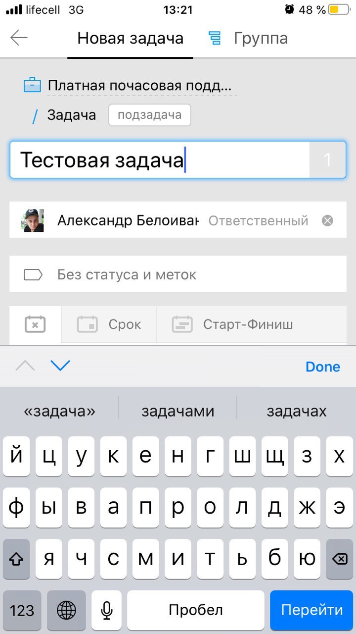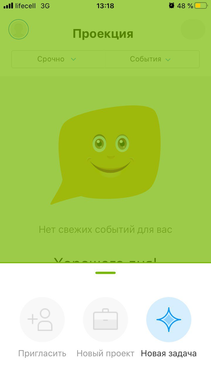 Шаг 1. После установки заходите в приложение и авторизуйтесь в нем. Шаг 2. Для того, чтобы поставить нам первую задачу нажмите зеленый плюсик и выберите «Новая задача». Шаг 3. После, выберите проект в рамках которого ставите задачу