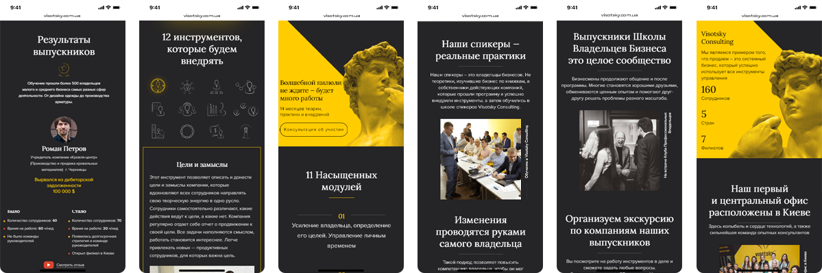 Создать лендинг для продукта компании Vysotskiy Consulting для привлечения новой аудитории на курс программы «Школа владельцев Бизнеса».