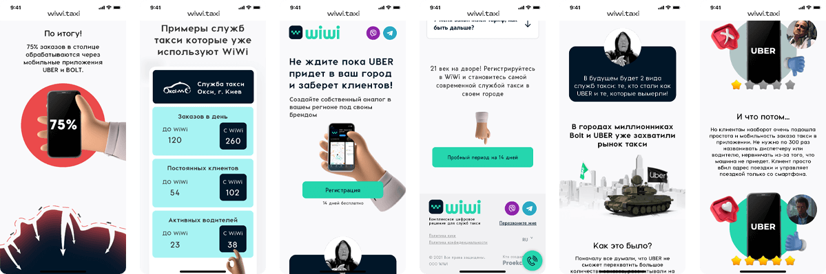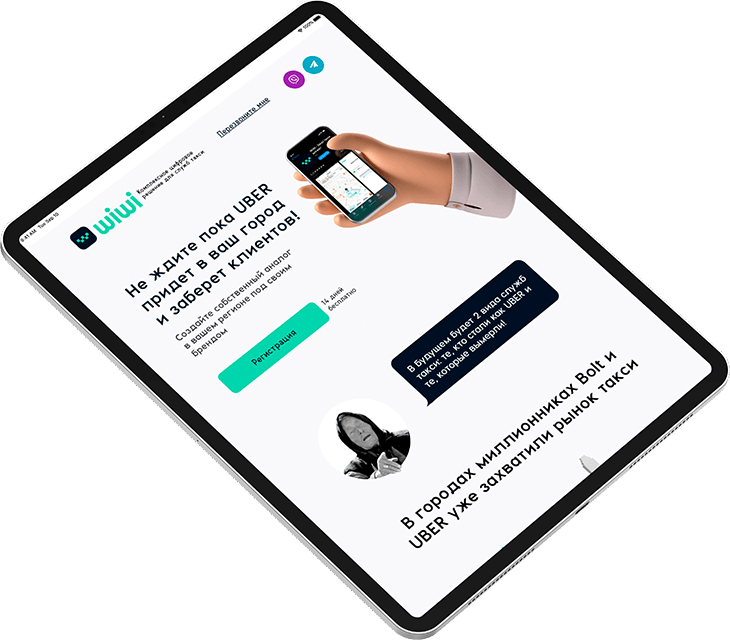 Создать лендинг, который не оставит сомнений, что привычка заказывать такси по телефону близится к концу, даже в регионах. Для выживания местным службам такси необходимо переходить на современные решения. C компанией WiWi — это возможно всего за 7 дней.